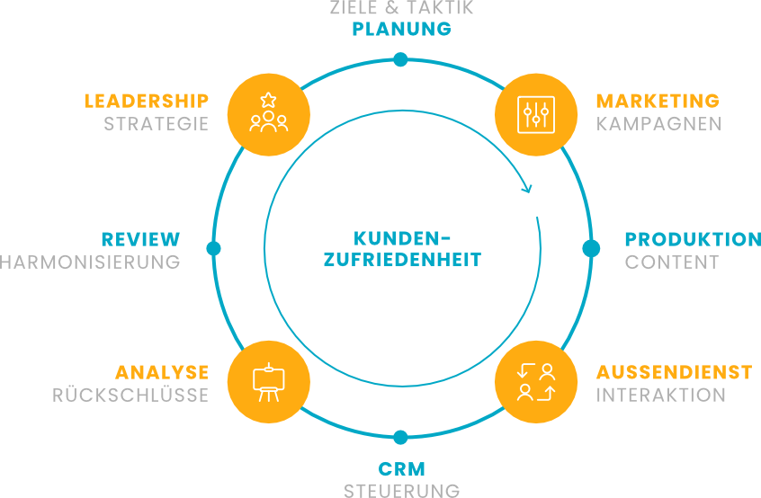 Das Closed-Loop-Prinzip lässt sich flexibel einsetzen: für Vertriebsmaßnahmen, Zielgruppenansprachen oder strategische Optimierungen. Führen Sie diverse Qualifikationen, klare Rollen und nutzenorientierte Technologie zusammen, um Kundenerlebnis und Interna laufend zu optimieren.